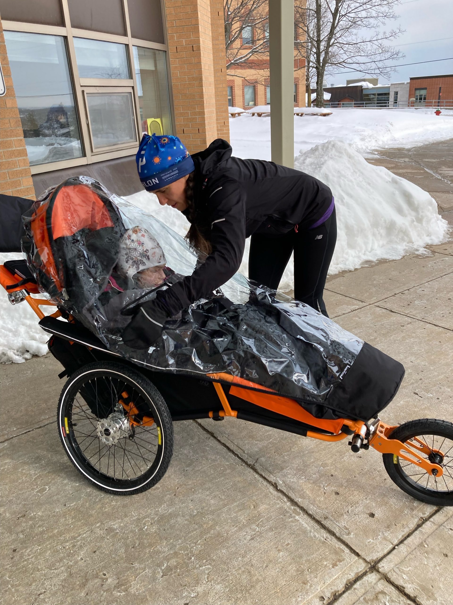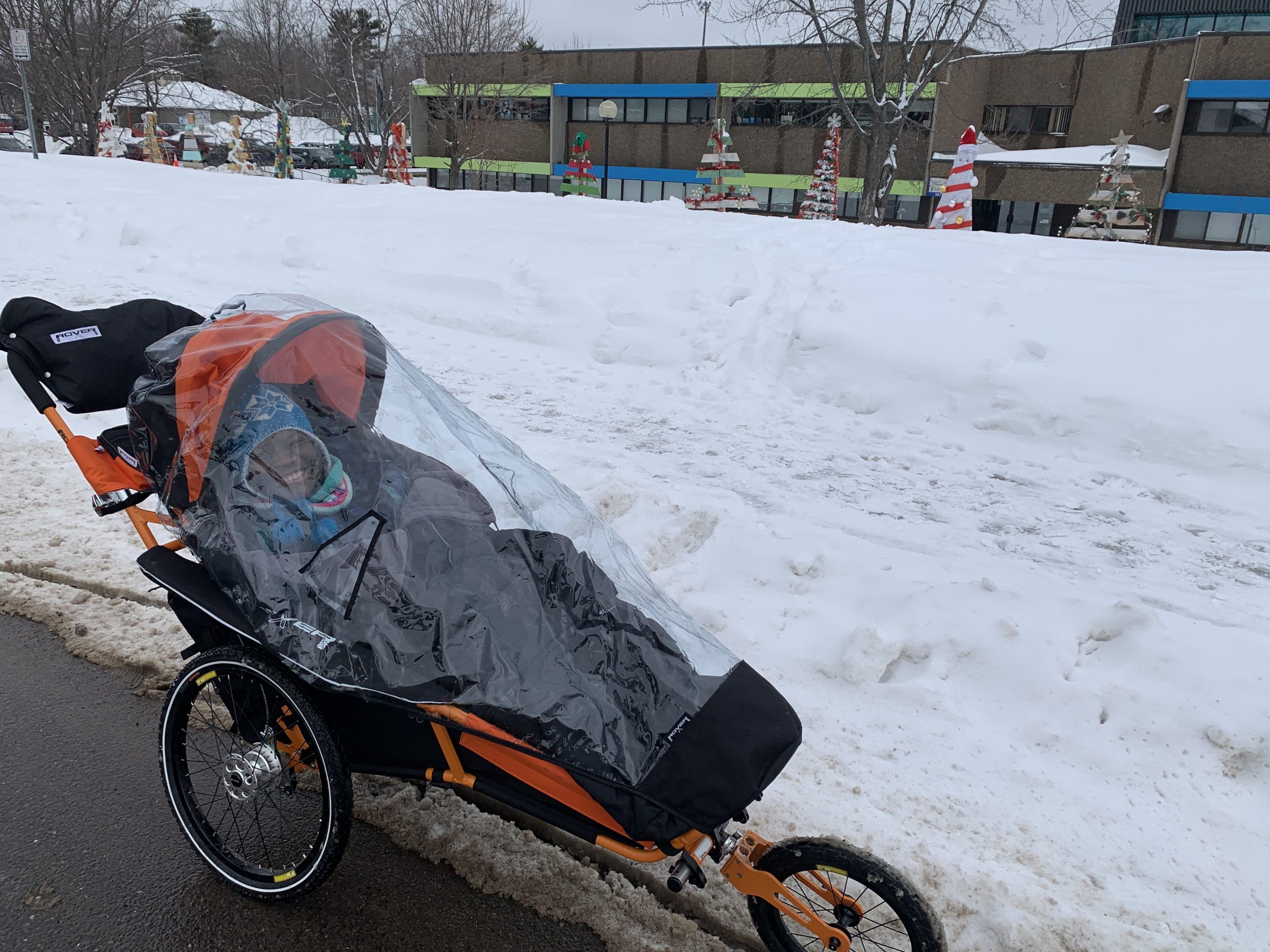 La poussette X Rover est un équipement vraiment complet et ajustable. Elle comprend plusieurs accessoires : les skis pour mettre sous les roues; la barre pour le vélo; plusieurs plastrons et ceintures ajustables et des éléments de positionnement (butées et appuie-tête); des housses pour la pluie, la neige ainsi qu’une housse moustiquaire. La poussette pourra donc être utilisée par pratiquement tous les élèves de l’école !