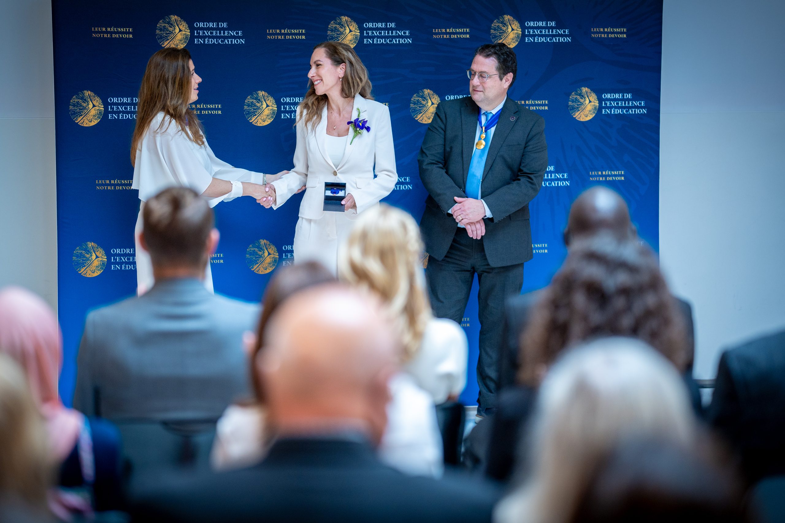 Nous sommes fiers de souligner la nomination de Mme Marie-Dominique Boivin, enseignante de musique à l’École Madeleine-Bergeron, à titre de membre distinguée de l’Ordre de l’excellence en éducation. Cette prestigieuse distinction en éducation, remise le 10 juin dernier lors d’une cérémonie à l’Assemblée nationale, lui a été octroyée par le ministère de l’Éducation et le ministère de l’Enseignement supérieur.