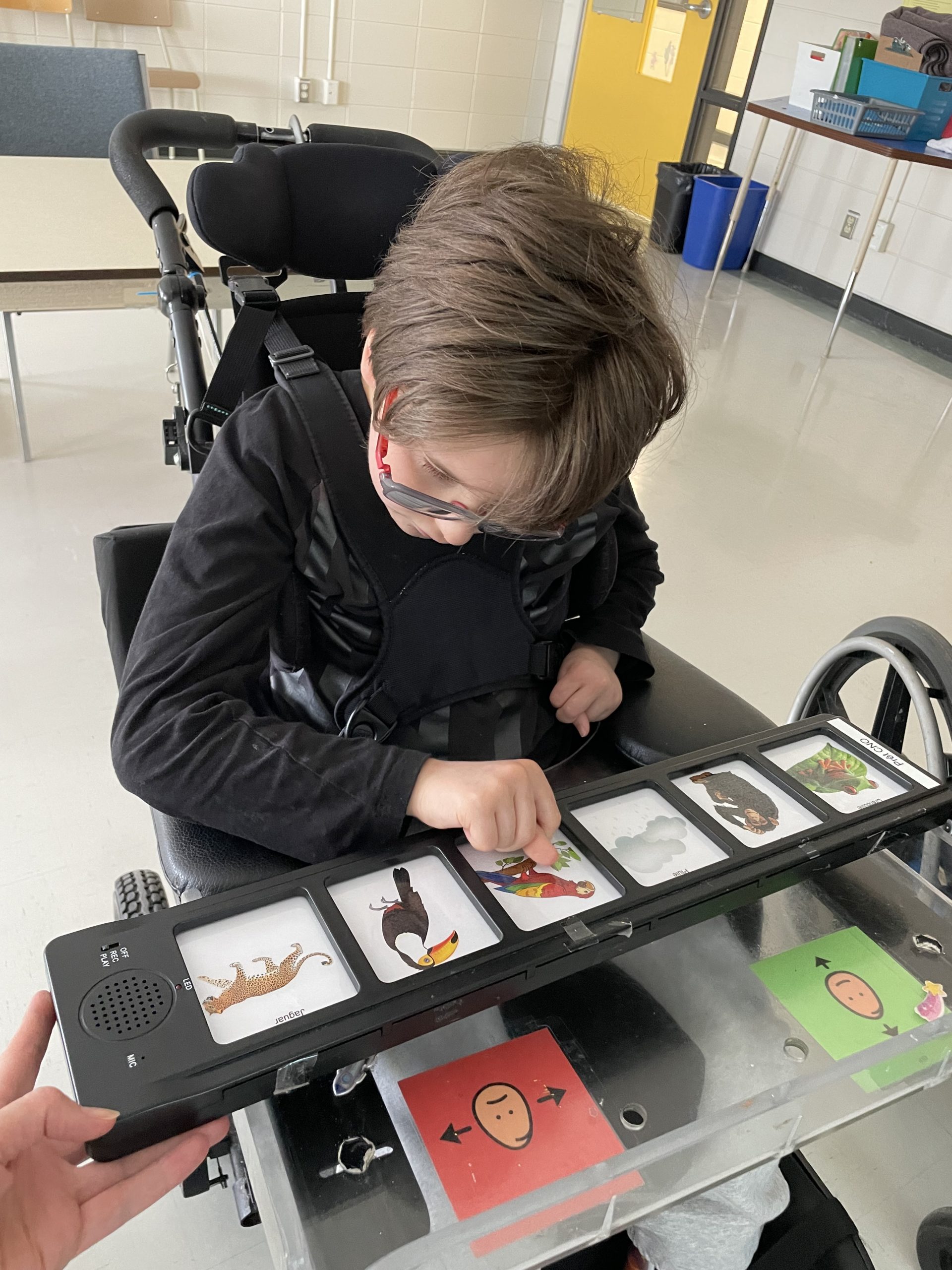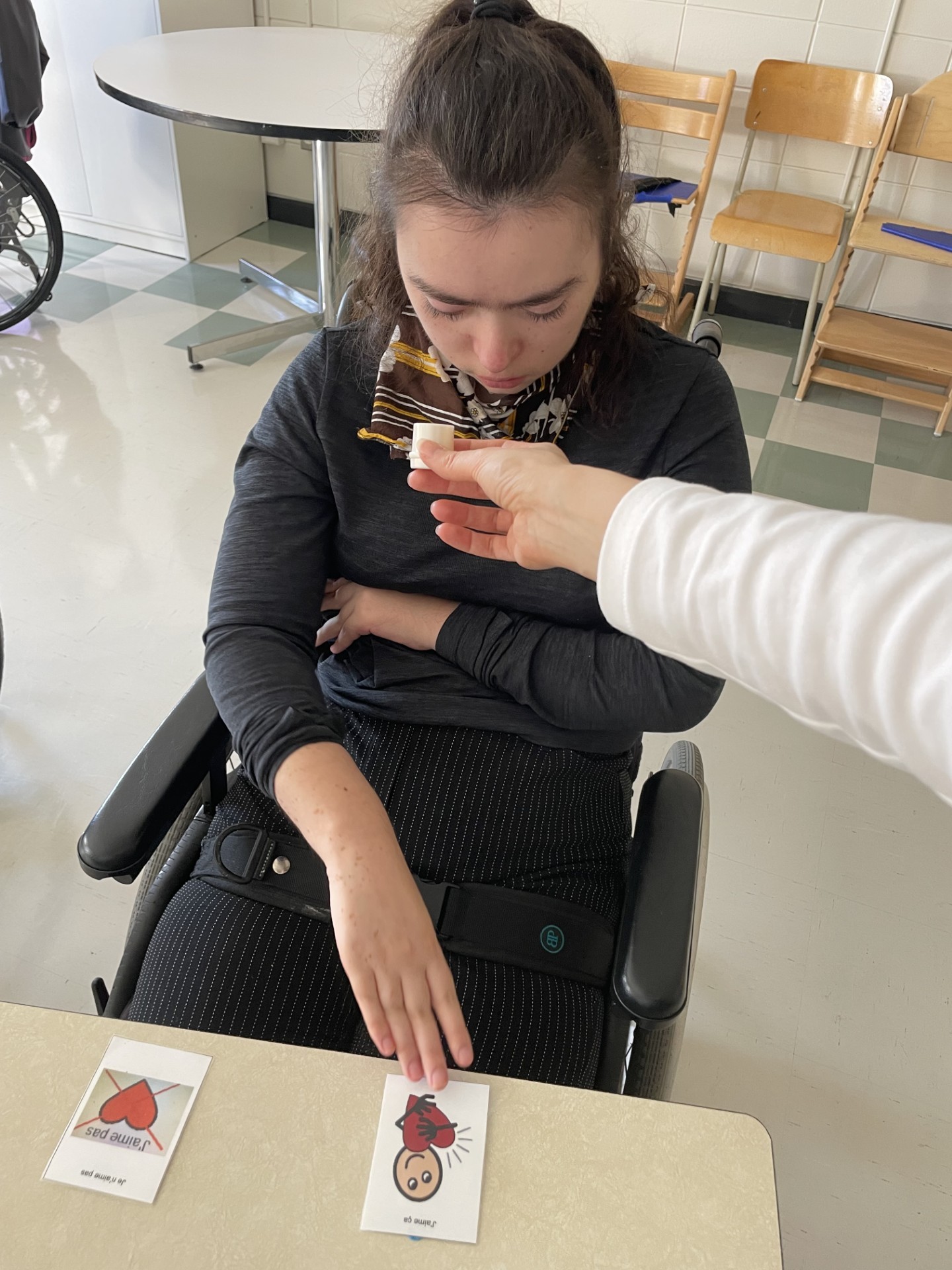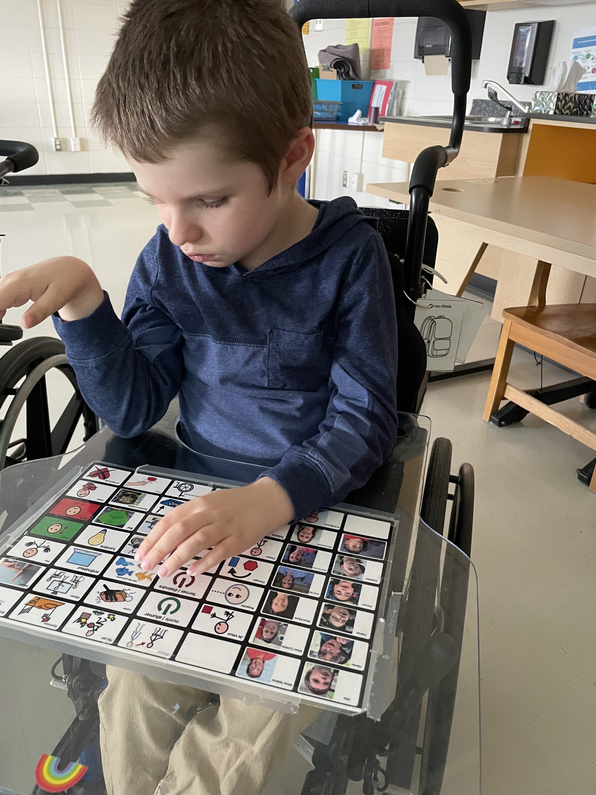 L’objectif principal étant de développer une communication fonctionnelle et multimodale : « Ici on peut parler avec des mots, des phrases, des signes, des images, des photos, des vocalises, notre sourire, nos yeux, un appareil step by step, un iPad… ».
