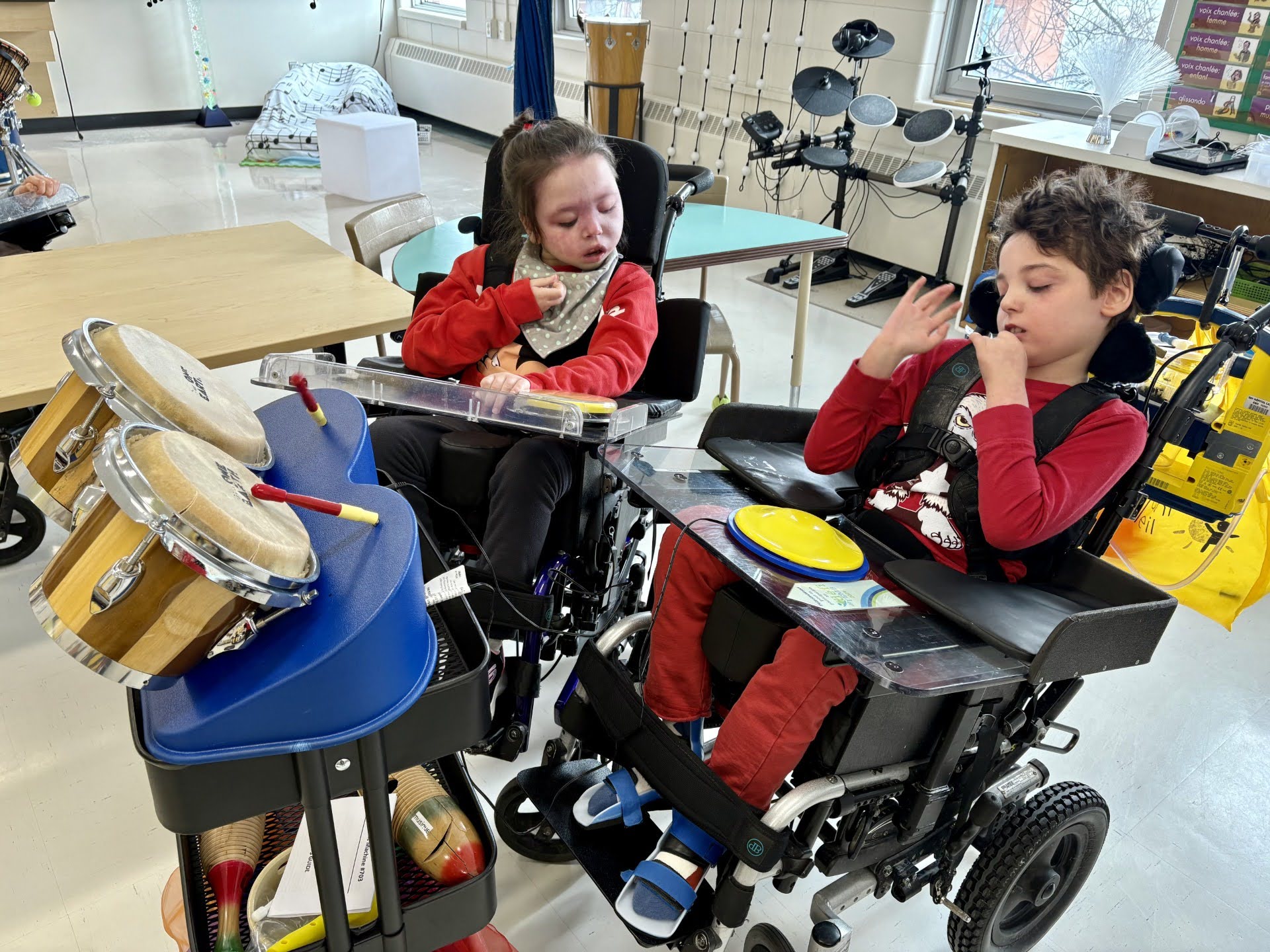 Les cours de musique permettent aux élèves de se développer sur le plan sensoriel et moteur, de susciter l’éveil langagier, d’améliorer leur communication, leur attention, leur créativité, leur persévérance et autre. Grâce à divers instruments de musique adaptés, tous les élèves interprètent des œuvres musicales de façon autonome.